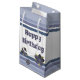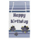 Liten blå och vit presentsäck, anpassa grattis på födelsedagen-texten till kostym vid särskilda tillfällen eller så går det inte att ta bort texten. Blommor kan också avlägsnas för honom, vit bakgrund och eller grått-blått rand kan bytas till vilken färg som helst för att ge komplimanger till er egen stil.