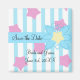 Blått Rand och Rosa stjärnor Spara datum Magnet