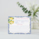 Utformning av recept-kort med vattenfärgscitroner, glansig grönt löv och vintage blå vita textaccenter som matchar mina inbjudningskort för möhippan-designer i samma färgruta.