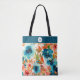 Här är en söt till väskan med ett höstfärgat blommönster i tonerna ljusblå, mjuk grönt och orange rött. Stjärnorna i mönster är vackra blå ro, och lövens varma färg kompletterar dem. Mönster placeras på vit bakgrund. Baksidan av påsen har samma mönster utan gräns, banderoll eller monogram. Du bestämmer vilken sida som ska visas!