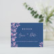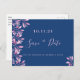 Blått rosa blommigt botaniskt bröllop spara datum vykort