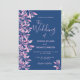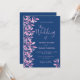 Blått rosa blommigt botaniskt skript bröllop inbjudningar