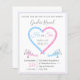En budgetbabydusch eller gender avslöjar inbjudan. På vit bakgrund kan man se ett rosa- och blåflygplan som släpper ut rök i kärlek-hjärtat. Typografitexten lyder: "Han eller hon, vad kommer baby att bli?" Anpassa genom att lägga till din fullt-händelse och kontaktinformation.