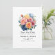 Blått, rosa, orange och grönt blommigt bröllop spara datum. Perfekt för varje tema eller trädgårdsbröllop.