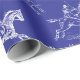 Blå toile mönster med vita silhuetter av hästar och rider. Hästen är ett majestätiskt djur som förkroppsligar andlig kraften av oberoende, frihet, styrka, mod, noblans, uthållighet, förtroende, triumf, heroism och konkurrens. Utformningen kommer att vara till nytta för ridsporten älskare.