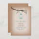 Ett bröllop spara datum med en illustration av en ljusblå lampa som hänger från träd gren med grönt löv. Anpassa texten. Bakgrunden är kardstock inspirerad. Leta efter matchande bröllopsinbjudningar och andra samordnande saker på Jill's Paperie.
