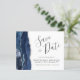 Den här eleganten sparar datumkortet med en marinblå vattenfärgsagat gräns som trimmas med faux silver glitter. Anpassadet kombinerar handskriftsskript för kol-grått, kopparplåt och kursivt typsnitt på vit bakgrund. Den omvända sidan har en matchande marin blå och silver-agate-design.