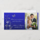 Blått, Silver Butterfly Blommigt Bröllop-fotokort Tack Kort
