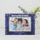 Blått silver glitter-fotokort - julkort inbjudningar
