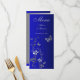 Det här royalet blått och marint blått och silver grått-menykortet har fjärilar och blommor från silver som matchar den bröllopsinbjudan som visas nedan. Den är designad på ett rackkort med en glansig framsida och projektionsyta avslutande på baksidan. Om du vill ha ett menykort på en linjär inbjudan som är papper för att matcha dina inbjudningar, eller om du har några förfrågningar om ytterligare objekt eller ändringar, kan du skicka e-post till niteowlstudio@gmail.com med din förfrågan.