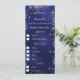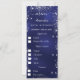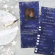 Menykort för födelsedagsfest. Anpassa och lägg till namn, ålder, datum och menyn som gästerna kan välja mellan. En marin blå bakgrund, dekorerad med faux silver glitter damm. Den blå färg är under. Vit färgad brev. Tillbaka: Lägg till ett foto av födelsedagsflickan, fakta om roligten och namn.