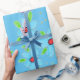 Blåblommat presentbyte med accenter i rött, bläcksvart och gröntar. Snyggt modererar alla tillfälle-presentfigursättningar. Texten i grattis på födelsedagen kan vara personlig till kostym vid ett särskilt tillfälle, eller så går det inte att ta bort texten. Den blå bakgrunden kan växlas till färg.