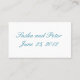 Blåblå snäckor som sätter upp kort till din bröllopsmiddag. Koordinerar perfekt med våra inbjudningar och tillkännagivanden på strandbröllop.