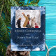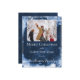 Sprid festiv tjusning med det här blåa Snöflingor-Helgdag-fotokortet, designat för att fånga säsongens magi. Julfotot hälsning har en charmerande fallande snö-motiv som ställs in mot en rik med en texturerad bakgrund som skapar en mysigt och elegant bakgrund för ditt familjefoto eller bild. Kortet markeras med ett skript för elegant som varmt uttrycker God jul och Gott nytt år känslor. Perfekt för att dela kärlek och minnen. Med det här kortet kombineras tidlös helgdag-charm med en sofistikerad vit snöflingor-design som passar dina nära och kära.