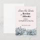 Blått snöigt akvarell-vinter kort för Save the Dat