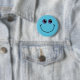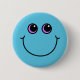Det lyckliga blåttemojiansiktet på detta knäppas har purpurfärgade ögon.