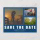 Anpassa det här snyggten moderna vågrät Spara vykortet Date bröllop designat med vit text på nautisk blått. Byt ut de tre mallarna bilder mot dina favoritfoton och ändra all mallinformation på båda sidor med din egen. Den här utformningen har en formulering: "Vi är gifta sig! (Med ert datum i giftermål) Och vill kärlek att ni sparar datumet för att kunna på vår speciella dag. Formell inbjudan att följa." kan du ändra ord med ditt eget. *Fotomall kredit: Foto 1: © by StephaniePetraPhoto; foto 2: © by Sean McGrath; foto 3: © by Tabitha Blue.