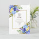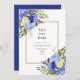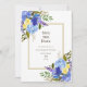 Dina gäster kommer att kärlek den här klassiska blåa, vattenfärgade skönheten. Från Carolina Blue Collection, denna sommarblå, sitter blommigt kant bouquets på den övre lämnat och nedre högerna, och binder ihop med en dubbla guld ram.