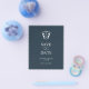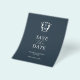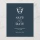 Meddela din förlovning med den här moderna budgeten spara datumet lakan. Den har en blandning av klassisk och skripttypografi i vitt över en fast blå bakgrund. Mata in bridens monogram i mitten av en vapensköld. Alla färger kan anpassas för att passa ditt bröllop färg-program. Använda mallen fält att anpassa med ditt namn och bröllop-datum. Blanda och matcha med många av mina utformningar för att skapa ditt anpassade bröllop-tema. En minimal utformning av eleganten för badbröllop på en budget. Om du vill se matchande bröllop-skrivarsvit går du till www.zazzle.com/dotellabelle