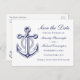 Blått Spara datum för nautisk Bröllop-ankarflottan Vykort