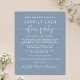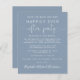 Budgetvänlig dammblått spara datum meddelande för en mottagning eller party för att fira er uppväxt eller lilla bröllop. "Spara datum för vår lyckligtvis allt efter Party" skrivs i en blandning av vit typografi och ett vitt skript med elegant med dekorationer. Anpassa meddelandet från bröllop mer i detalj och lägg till party eller mottagning för att spara datuminformationen och namn i ett namnteckning skript. På andra sidan lägger du till namn och bröllop och data för mottagande.