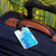 Blått spot, vattenfärgabstrakt räcker målat bagagebricka