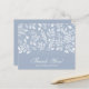Det här dammiga, blå tackkortet är ett utmärkt värde som är tryckt på 110 lb pappert och har ett vitt löv mönster, ord "Tack" och ditt namn i chic, vit text på framsidan och ditt personliga budskap på baksidan. Perfekt tackkort för bröllop, möhippa, babydusch, födelsedag, årsdag, studenten eller speciella evenemang. VITE-kuvert är valfritt. Mått 4,5 x 5,6 tum, men du kan välja mellan tre pappra storlekar. MER FÄRG i vår samling.