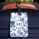 Blått Toile Initial Bagageetikett Bagagebricka