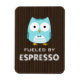Blått Uggla som drivs av Espresso (Anpassade Text) Magnet
