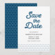 Blått Vågar Spara datumkortet har en blå vinkara mönster baksida. Anpassa den genom att ersätta platshållartexten. Om du vill ha fler alternativ som att ändra teckensnittet och det är storlekt/färg eller mellanrummet mellan brev klickar du på knappen "Anpassa". *Observera att Zazzle Watermark som visas i zoomförhandsvisningen INTE visas på den färdiga tryckta produkten. © Rosewood and Citrus