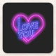Blått Valentines Hjärtat vid Rosa av Neon Underlägg Papper Kvadrat