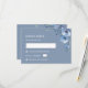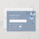 Detta bröllopssvarskort har blå vattenfärgblommor på en skifferblå bakgrund. Matchande inbjudan tillgänglig.