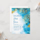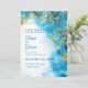 Blått vattenfärg och Guld-blomma Spara datumkortet Inbjudningar
