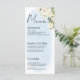 Blått vattenfärg Vit ros Bröllop-meny Monteringsko Meny