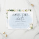Ge gäster en glimt av ditt kommande bröllop med eleganten Blue Watercolor och Vit ros Save Date Card. Med en mjuk blå vattenfärgsbakgrund och ömtåliga blommigtar i vit ros, fångar den här designen balansen mellan perfekt och sofistikering i romantik. Enkel att anpassa med namn, datum och plats för bröllop - perfekt för att ange tonen för din speciella dag.