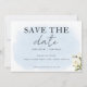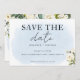 Ge gäster en glimt av ditt kommande bröllop med eleganten Blue Watercolor och Vit ros Save Date Card. Med en mjuk blå vattenfärgsbakgrund och ömtåliga blommigtar i vit ros, fångar den här designen balansen mellan perfekt och sofistikering i romantik. Enkel att anpassa med namn, datum och plats för bröllop - perfekt för att ange tonen för din speciella dag.