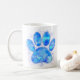 Tecknad hund pawprint i blått. Watercolor stil art. Anpassningsbar ceramic kaffe koppar. Gift-idé för hundälskare.