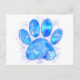 Tecknad hund pawprint i blått. Anpassningsbar-vykort för stil i vattenfärg. Gift-idé för hundälskare.