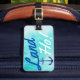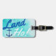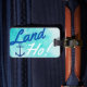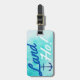 Tur blå vattenfärgsbagagetagg med frasen "Land Ho!" och en marin perfekt för ankarsilhouette för nästa kryssningsresa!