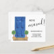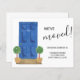 Låt familj och vänner få veta din ny adress med detta budgetvänliga kort för flytta. Det är dekorerat med en vattenfärgad blå dörr och topiatväxter i krukor. Anpassa det här kortet med ditt namn, nya adress nummer och husnummer. Ursprunglig vattenfärg © Michele Davie