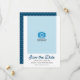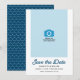 Blått Vinkart foto Spara datumkortet har blått vinkara mönster baksidan. Anpassa den genom att ersätta platshållartexten och ersätta exemplet/platshållarfotot med ett eget foto. Om du vill ha fler alternativ som att ändra teckensnittet och det är storlekt/färg eller mellanrummet mellan brev klickar du på knappen "Anpassa". *Observera att Zazzle Watermark som visas i zoomförhandsvisningen INTE visas på den färdiga tryckta produkten. © Rosewood and Citrus