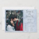 Lägg märke till din bröllopsdag med det här blå Vintagen med stripe-foto Spara datum meddelande. Spara datumsymbolen med en vintage med rastrerad bakgrund och fotoplacering för lycklig-paret. Lägg till foton och information om bröllop som du vill anpassa.