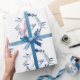 Modern blått & vit med skrivar GLÄDJEtypografi, och minsta designat fatta Corollamönsterjul som slår in papper