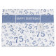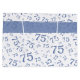 Anpassa enkelt presentens märkre och Grattis på födelsedagen med de medföljande textmallarna. Denna design är ett blått och vitt slumpmässigt tal mönster med milstolpe nummer 75, som upprepas i varierade storlekar och vinklar. Det finns en utskriven banderoll och en märkre med textmallar som kan ändras till ditt eget ord, namn, initialer eller monogram. En underbar idé för personlig, presentfigursättning, hantverk eller dekorationer i party vid något särskilt tillfälle i 75:e. Det är lämpligt för födelsedagar, årsdagar eller för tillfällen där man firar siffran 75, bara genom att ändra texten så att den stämmer överens med tillfälle. Obs! märkrn av band och gåvor är inte äkta, utan ingår i den tryckta utformningen.