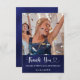 Ett födelsedagsfotokort för Tack. En marin blå, ojämn färgad, vit text Anpassa och lägg till ditt foto och tackkort.