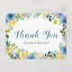 Blått vykort för Blommigt för Tack av bröllop-Gult