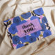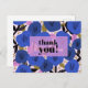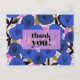 Den stora blå blomman mönster på framsidan med texten "tack" över ett genomskinligt "band" för ett utseende med flera lager. Det här meddelandet kan ändras om du vill. Lägg till ditt eget meddelande och namnteckning vid omvänd. Moderna platta kort har rundade eller kvadratiska hörn och kan användas för alla tillfälle.