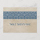 Rustic Snöre Bordsnummer-vykort för enkelt och elegant med en vintage med en texturerad papper utseendebakgrund och en söt och vacker gräns i snöre mönster i mörk blått. Enkel att anpassa, lägg helt enkelt till rätt bordsnummer i den text fält tillhandahåller. Klicka på Anpassa om du vill söka efter fler anpassningsalternativ.