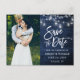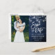 Modern penselskript, Rustic Blue Wood, String Ljus med Mason Burk, Save Date Förlovning Couple Photo Postcard