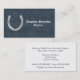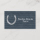 En illustration av en hästsko på en mörk - slösa denimbakgrund med en vitbokstävermall, det omvänt är vit med svart text. Detta är ställer in för en farrier men kunde användas för någon rid- affär.